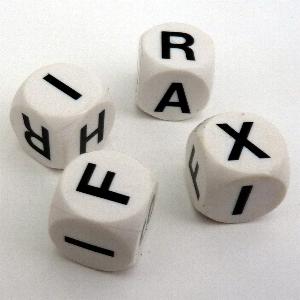 weiße Buchstabenwürfel |